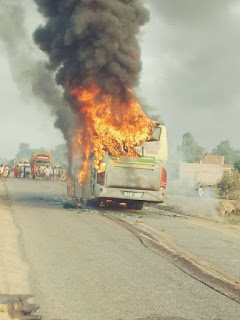 रायबरेली में खीरों थाना क्षेत्र के दुर्गा खेड़ा गांव के पास उस समय हड़कंप मच गया जब एक स्कूल बस में अचानक शॉर्ट सर्किट होने के चलते आग लग गई देखते ही देखते बस धूं धूं कर जलने लगी गनीमत रहेगी बस में मौजूद हेल्पर और ड्राइवर की सूझबूझ से बस में सवार सभी 45 बच्चों को सुरक्षित निकाल लिया गया लेकिन अधिकांश बच्चों की किताबों से भरी बैग बस में ही छूट गई सूचना के घंटों बाद पहुंची फायर ब्रिगेड की टीम ने बाद में जाकर आग को काबू में किया लेकिन तब तक स्कूल बस जलकर खाक हो चुकी थी बताया जा रहा है कि यह स्कूल बस खीरों थाना क्षेत्र के पाहो गांव में स्थित न्यू सरस्वती ज्ञान मंदिर स्कूल की बस है जो बच्चों को लेकर उनके घर छोड़ने जा रही थी तभी दुर्गा खेड़ा गांव के पास अचानक बस में शॉर्ट सर्किट से आग लग गई गनीमत रहेगी आग बुझाने के बजाय ड्राइवर और हेल्पर ने सभी बच्चों को सुरक्षित बस के नीचे उतार लिया बस में मौजूद हेल्पर की माने तो जैसे ही आग लगी हम लोगों ने आग बुझाने के बजाय सबसे पहले बच्चों को बस से नीचे उतार लिया जिससे सारे बच्चों की जान बच गई आग शॉर्ट सर्किट की वजह से लगी थी।