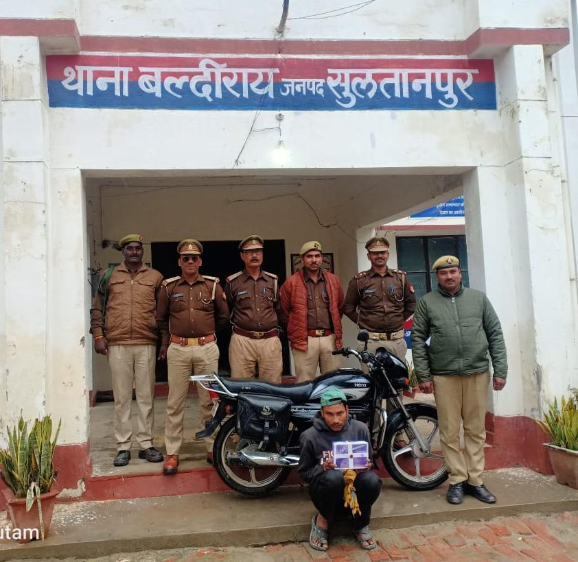 सुल्तानपुर के बल्दीराय पुलिस को बड़ी सफलता हाथ लगी है.पुलिस अधीक्षक हिमांशु कुमार के निर्देशन में थानाध्यक्ष आकाश सिंह हमराहियों के साथ गस्त के दौरान मुखबिर की सूचना पर शातिर अपराधी मूसा पुत्र वाजिद निवासी नंन्दौली को थाना क्षेत्र के गनापुर के पास से किया गिरफ्तार।उसके पास से चोरी की एक बाइक व तमंचा कारतूस किया किया बरामद,थानाध्यक्ष ने बताया कि मूसा क्षेत्र में कहीं बड़ी घटना की फिराक में था. इसके ऊपर दो दर्जन से अधिक आपराधिक मुकदमा बिभिन्न थानों में दर्ज है।पुलिस को काफी समय से इसकी तलाश थी,गिरफ्तारी टीम में दारोगा विकास गौतम, शहीद अहमद ,पारा चौकी इंचार्ज नूतन स्वरूप नागर, हरिप्रसाद विक्रम कमलेश पटेल व दिनेश कुमार ने निभाई मुख्य भूमिका। रिपोर्ट-तक़ी मेहंदी,सुल्तानपुर