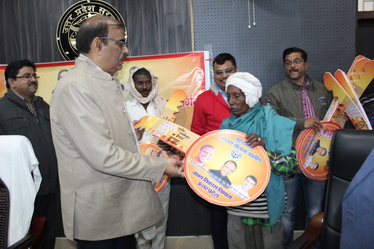 आजमगढ़ में मुख्यमंत्री आवास योजना ग्रामीण के अन्तर्गत लोक भवन लखनऊ में मुख्यमंत्री उ0प्र0 योगी आदित्यनाथ द्वारा चाभी वितरण कार्यक्रम के अन्तर्गत लाभार्थियों को आवास की चाभी वितरित की गयी। जिसका लाइव प्रसारण कलेक्ट्रेट सभागार में किया गया। इसी के साथ ही जिलाधिकारी नागेन्द्र प्रसाद सिंह द्वारा मुख्यमंत्री आवास योजना ग्रामीण के अन्तर्गत ग्रामीण क्षेत्रों में दैवीय आपदा से पीड़ित परिवार, मुसहर/बनवासी परिवार तथा कुष्ठ रोगी के ऐसे 97 परिवारों को जिनके आवास पूर्ण हो गये हैं ।उनको मुख्यमंत्री आवास योजना ग्रामीण के अन्तर्गत प्रतिकात्मक रूप से चाभी वितरण किया गया। इसी के साथ ही जिलाधिकारी द्वारा प्रत्येक लाभार्थियों को कम्बल भी वितरित किया गया।