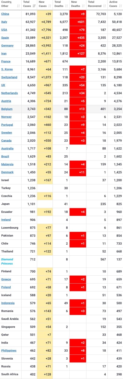 विश्व स्वास्थ्य संगठन के अनुसार दुनिया भर में कोरोना से संक्रमित लोगों की संख्या 381,649 को पार कर गयी है. इटली में कोरोना वायरस से एक दिन में 368 लोगों की मौत हुई थी.