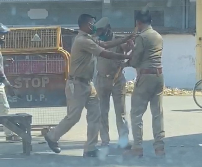 यूपी के सीतापुर में लॉक डाउन ड्यूटी के दौरान एक सिपाही ने बीच सड़क पर दरोगा की लाठियों से पिटाई कर दी. इतना ही नहीं पिटाई के दौरान सिपाही ने दरोगा को कई थप्पड़ भी मारे. इस घटना का वीडियो गाड़ी सवार एक व्यक्ति ने अपने मोबाइल में कैद कर लिया और उसे वायरल कर दिया. पूरे मामले को लेकर दरोगा ने सिपाही के खिलाफ मामला दर्ज कराया है. एसपी एलआर कुमार ने सिपाही को निलंबित कर दिया है.यह पूरा मामला शहर कोतवाली इलाके का है.