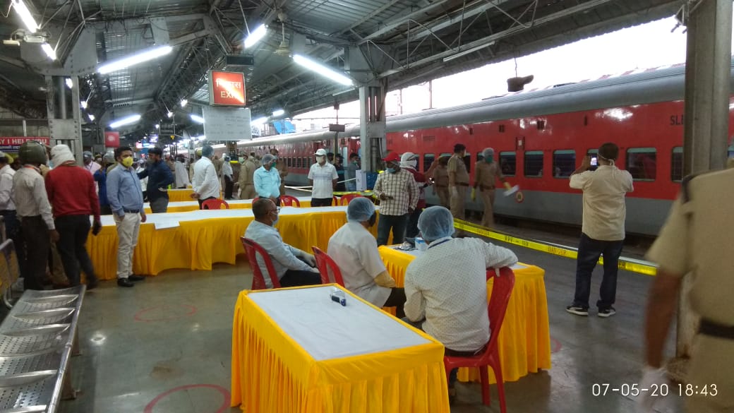 जहां पर कोरोना वायरस महामारी बीमारी लॉकडाउन पार्ट 3 के दौरान सूरत में फंसे करीब 1200 श्रमिकों को रेलवे स्टेशन पर उतारकर थर्मल स्क्रीनिंग कराकर आसपास के बारह सौ यात्रियों को उनके गंतव्य स्थानों पर सरकारी बसों से पहुंचाया जा रहा है । बताया गया कि सभी यात्री श्रमिकों की सूचना उनके जिलों के अधिकारियों को दे दी गयी है ।ताकि उनकी व्यवस्था उन जिलों का प्रशासन तय कर सकें।